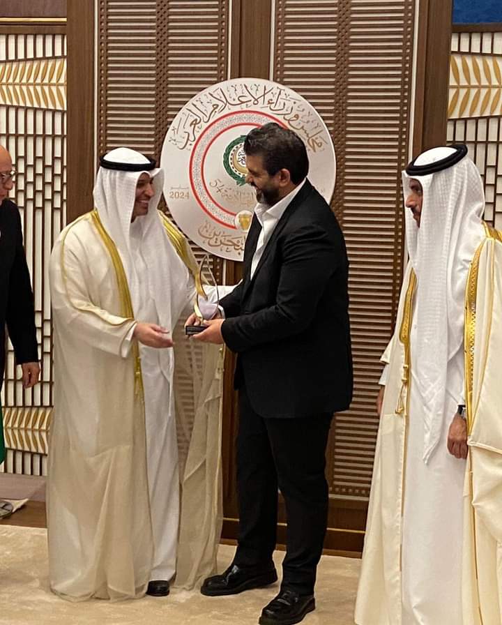 ونشر الكاتب الصحفى أحمد الطاهرى، رئيس قطاع القنوات الإخبارية بالشركة المتحدة للخدمات الإعلامية، صوراً عبر حسابه الشخصى بموقع فيس بوك، لحظة تسلمه للجائزة وكتب "هنا القاهرة الإخبارية.. عاصمة الخبر، الحمد لله جائزة التميز الإعلامى العربى لعام 2024".